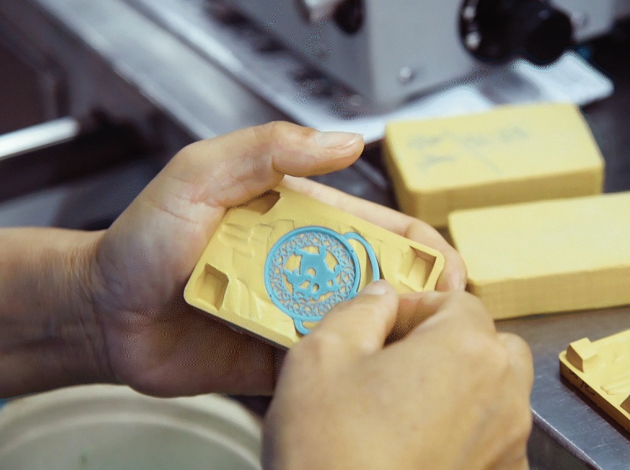 最后將“金樹(shù)”上的產(chǎn)品剪下,并對(duì)產(chǎn)品進(jìn)行修整,使其達(dá)到造型優(yōu)美、表面平整。經(jīng)過(guò)表面工藝、車(chē)花、成品拋光等流程后,倒模工藝的金飾品就制作完成了。