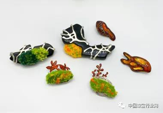 枯榮元素首飾展現(xiàn)植物各個(gè)時(shí)期不同特征的生命美和其與環(huán)境結(jié)合所表現(xiàn)出來(lái)的生態(tài)美,讓觀者感知、感受植物枯萎時(shí)的清凈之美,繁榮時(shí)的繁盛之美,枯榮交替,生生不息。