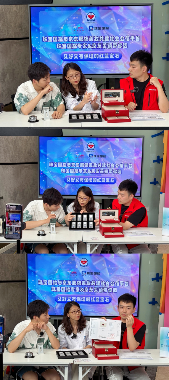 近日,珠寶國檢集團(tuán)攜手京東服飾美妝,珠寶國檢集團(tuán)北京實(shí)驗(yàn)室代理技術(shù)負(fù)責(zé)人董靖與京東主播王松通過珠寶國檢社會(huì)公信平臺公益科普直播,為廣大珠寶玉石愛好者帶來了一場有趣又有料的紅、藍(lán)寶石科技文化盛宴。